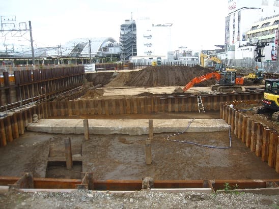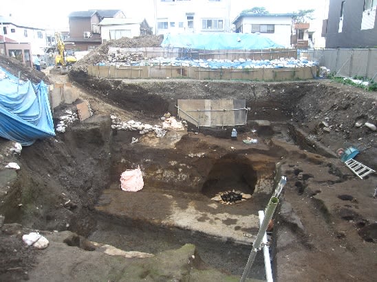 埋蔵文化財発掘調査現場に立ち寄る。敷地西側の土中にはコン