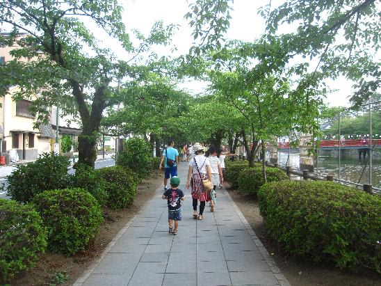 小田原駅前からお堀端へ。今日はすいぶんと人通りが多い。二の丸広場で開催されている小田原ちょうちん夏まつりへ向かう人が多いようだ。