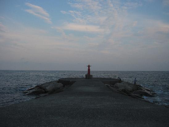 突堤へ。穏やかな夕暮れの海と海風が心地良い。賑やかな場所よりここのほうが落ち着けるので性にあっている。