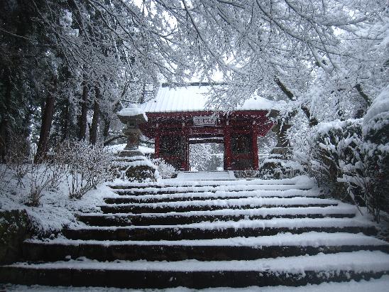 大雄山最乗寺に到着。積雪は30センチほど。雪のため参拝者の姿も無く境内は静まり返っている。いつもと違い雪国の山寺のような雰囲気。
