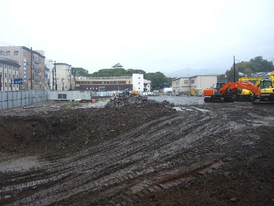 小田原駅東口臨時駐車場に寄り道して、駐車場施設ゾーンの建設予定地を撮影。先週と比べ駐車場だった部分の