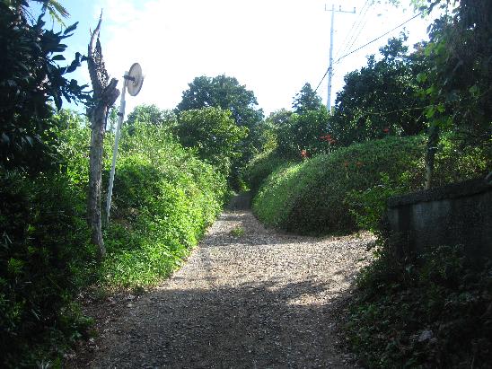 かなりな急勾配の細い農道を進むと、途中で2度ほど分かれ道になるが、いずれも左側の農道を進む。