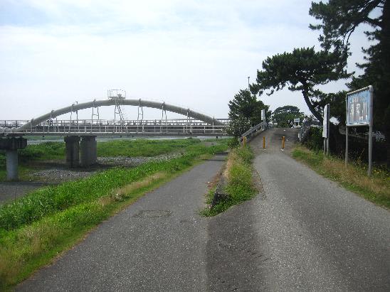 午前9時30分、酒匂川右岸の酒匂川サイクリングコース入口。スタートから8.3km。報徳橋を渡り酒匂川サイクリングコースへ。