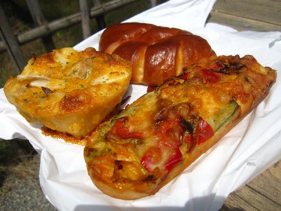 ラスカのカラヘオベーカリーで夏野菜のスパイシーミートとクリームパンとツナオニオンを購入。3つで621円。