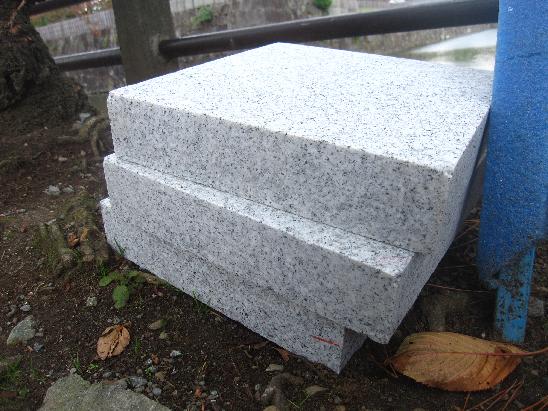 敷設されるタイルが工事現場脇に積まれていた。思ったよりも厚みがあって頑丈そうだ。