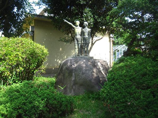 その早川小学校には日本一健康優良学校の表彰を記念したブロンズ像が、表彰翌年に建立され現在も残っている。校門を入ってすぐの植込みの中にあるブロンズ像が表彰記念の像。
