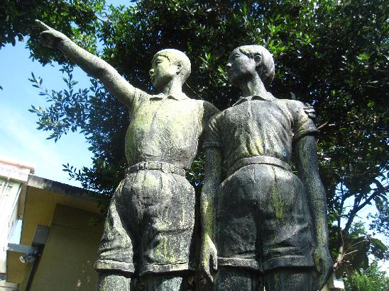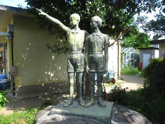 早川小学校の日本一健康優良学校表彰記念像は男女の児童をモデルにしたもので高さは約90cmのブロンズ製。作者は彫刻家の安田周三郎氏。