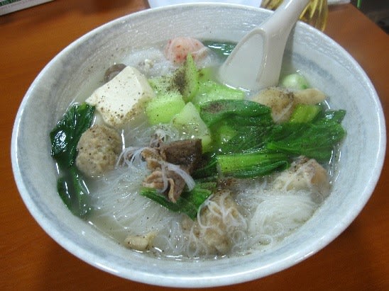 ビーフンメニューを注文、あっさりとしながらも旨みのあるスープとホルモンが歯ごたえのある
