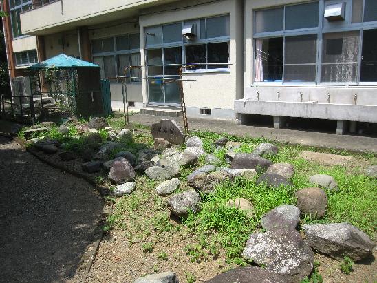 昭和5年の卒業記念で造られた岩石園だが雑草が茂っていて、現在では教育には活用されていないようだ。