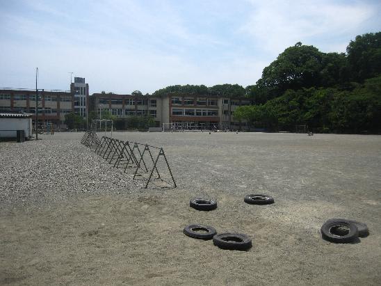 下中小学校の周囲は畑が多く、高層の建物がないので校庭がとても広く見える。また実際に校庭部分は何度か拡張したこともあって広々としている。下中小学校は県道からも新幹線の高架からも適度に離れた場所にあるので割合静かで教育環境としては良いのではと感じる。