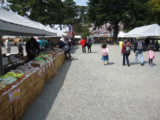 学橋を渡り二の丸広場へ。今年のかまぼこ桜まつりは平日の金曜から開催。まだ早い時間だったので会場は空いていた。