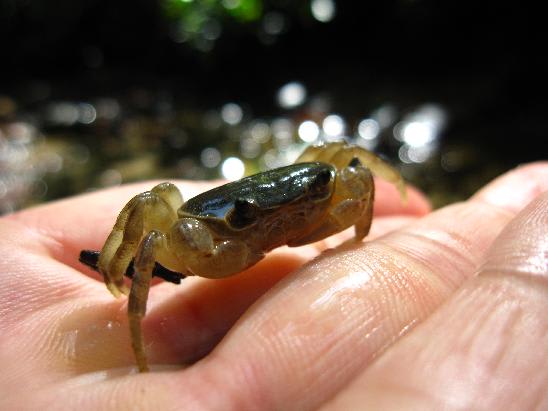 ここの小川の石をひっくり返すと大抵、小さな沢蟹が潜んでいる。手のひらにのせて写真を撮ってからそっと元の場所に戻した。